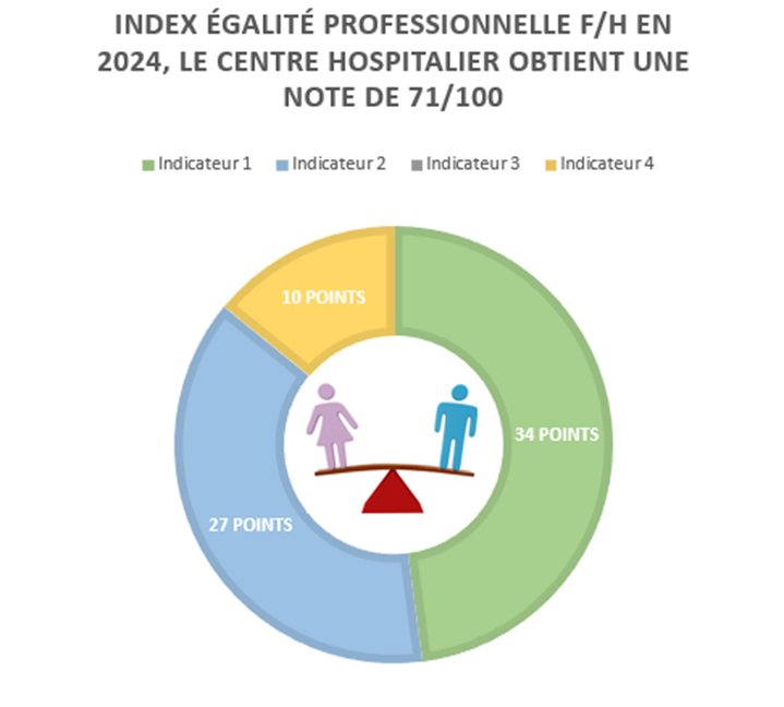 En application des décrets n°2024-948 et n°2024-949 du 21 octobre 2024, relatives à la mesure et à la réduction des écarts de rémunération entre les femmes et les hommes dans la fonction publique hospitalière, les établissements de la FPH sont tenus de publier chaque année les résultats obtenus pour chaque indicateur de l'Index de l'égalité professionnelle.
